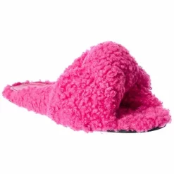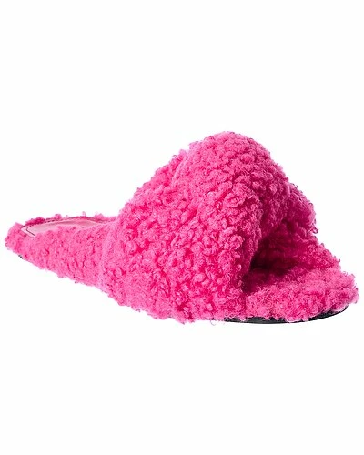 - Drapy Sandal in pink faux shearling with twisted design