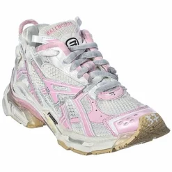 - Runner Sneaker in white and pink mesh and faux leather with chunky design and distressed detailing